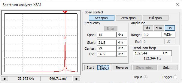 Анализатор спектра исследует сигнал в частотной области, разделяя его на отдельные компоненты на различных частотах. Теоретически, если идеальный синусоидальный сигнал подать на вход анализатора спектра, то можно увидеть одну вертикальную линию - на основной частоте синусоидального сигнала. Однако, сигналы от реальных источников являются более сложными, и поэтому график их спектра содержит дополнительные спектральные линии.