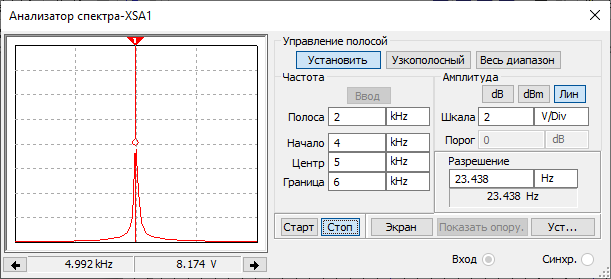 График 1. График спектра для f1 = 5 кГц методом контроля частоты
