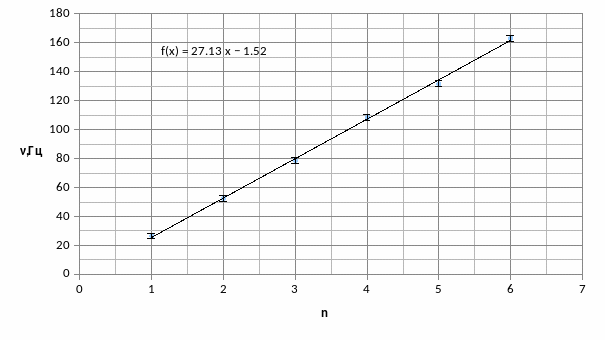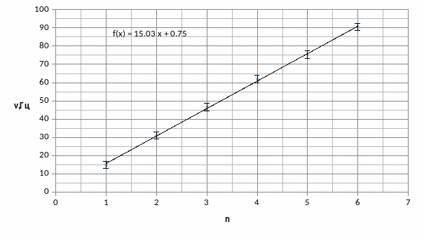 6.(Добавление в задание).Оценим стандартную погрешность измерения частоты , запишем частоты при которых 3 полуволны при разных натяжениях проволоки.