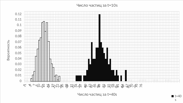 Данные для построения гистограммы числа срабатываний счетчика за 40 сек: