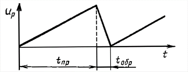 напряжения к начальному и продолжению графика с левого конца экрана.