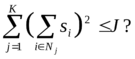 57. Доказать NP-полноту задачи ²Минимум суммы квадратов² [Заданы конечное множество N, размер si для каждого i Î N и числа K и J. Могут ли элементы из N быть разбиты на K непересекающихся множеств N1, ..., NK, таких, что