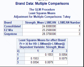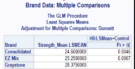 lsmeans Brand / pdiff=control('Graystone') adjust=dunnett;