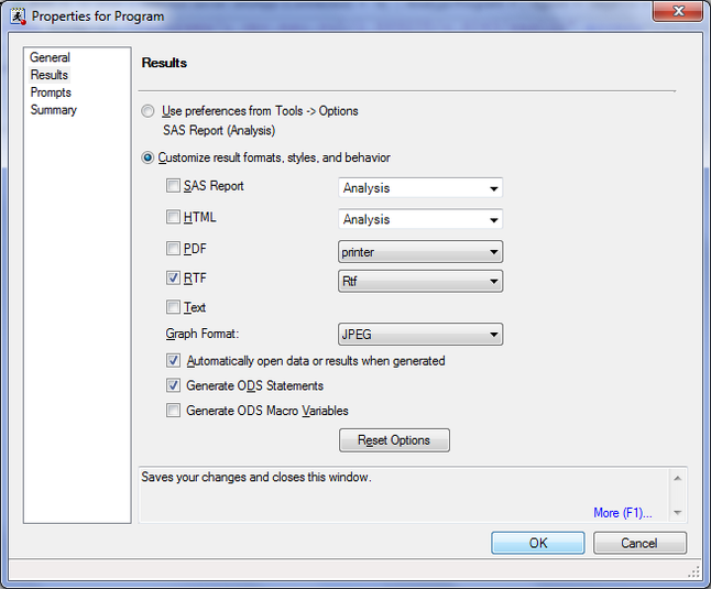 3. Результат запуска кода в формате RTF (в окне редактирования кода нажать кнопку Properties (вверху справа)  Results  RTF, Graph format = JPEG – см. картинку ниже):