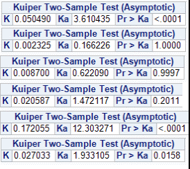 | Модель1: proc npar1way edf data=train1_5; class ins; var CRScore DirDep HMVal LORes HMOwn MMBal; title "K-S Statistic for the Validation Data Set"; run; Для данной модели получены следующие результаты прохождения тестов: