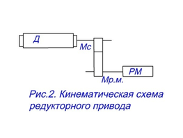 Наиболее распространенной конструктивной формой большинства рабочих машин является сочленение с электродвигателем посредством редуктора. В этом случае скорости движения вала рабочей машины и вала двигателя различны и при использовании уравнения движения электропривода все моменты должны быть приведены к единой скорости или к единому валу – валу электродвигателя. При приведении необходимо учитывать потери в редукторе. Рассмотрим кинематическую схему, приведенную на рис.2. Двигатель сочленен с рабочей машиной через редуктор с передаточным отношением i. Требуемая мощность на валу рабочей машины равна: