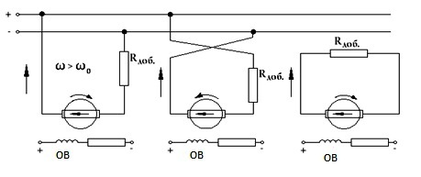 , при этом E > U и ток якоря меняет свое направление на обратное