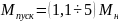 К легкому относят режим пуска, когда статический момент не превышает 35-40%
