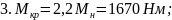 и сведем результаты вычисления М и n в таблицу 1, по расчетным данным построим механическую характеристику, рис.13.