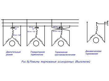 генераторном, динамическом, торможении противовключением, а соответствующие схемы включения приведены на рис.16.