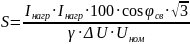 cosφсв - коэффициент мощности светильника, cosφсв = 1 для светильников с лампой накаливания, cosφсв = 0.5 с люминесцентной лампой,