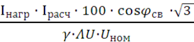 ΔU - допустимая потеря напряжения в осветительной сети, %, значение ΛU принимают в пределах 2,5-5 % от Uном, В.