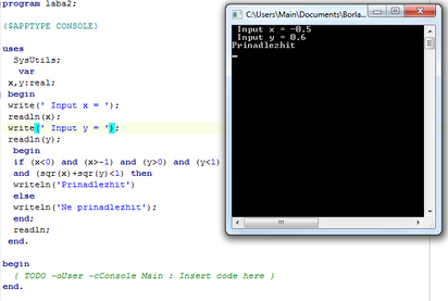 Вывод: была создана программа, определяющая принадлежность точки к области.