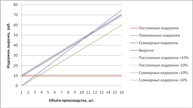 Анализ чувствительности точки окупаемости к изменению постоянных издержек