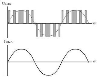 Широтно-импульсное управление характеризуется периодом модуляции, внутри которого обмотка статора электродвигателя подключается поочередно к положительному и отрицательному полюсам выпрямителя. Чем больше частота модулирования сигналов, тем больше выходное напряжение приближено к синусоидальному закону, благодаря фильтрующим свойствам самих обмоток.