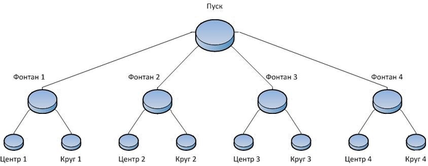 При нажатии кнопок «фонтан 1» - «фонтан 4» запускаются соответственно 1-4 фонтаны.