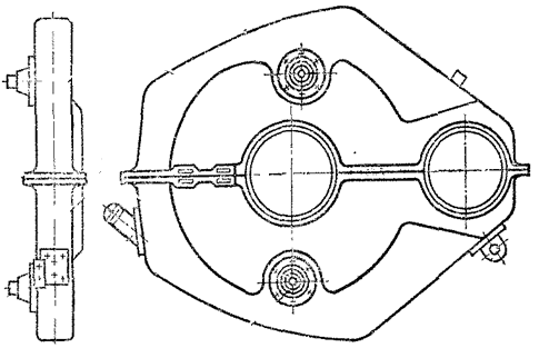 Кронштейн, выполненный отливкой из стали 12ГТЛ или 25Л, прикреплен к остову тягового электродвигателя болтами, попарно застопоренными планками.