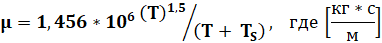 μ0 = 17.894 10-6, Па·с – динамическая вязкость