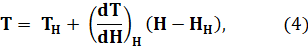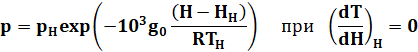 | участок | Высота, км | TH, K | (dT/dH)H, K/км | HH, км | pH, Па |