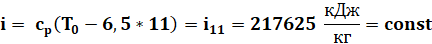 T0 = 288,15 K; cp = 1004,5 /кг*K; i0 = 289447