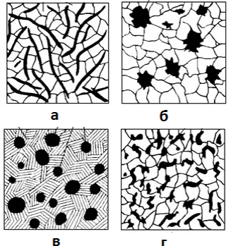 серый чугун - углерод находится в частично или полностью свободном состоянии в виде графитовых включений