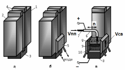 Рис. 60С. Схема электрошлаковой сварки (ЭШС) Источником теплоты при электрошлаковой сварке является шлаковая ванна. Перед началом электрошлаковой сварки (рис. 60С, а) свариваемые кромки заготовок 1 и 2 устанавливаются в вертикальное положение и снизу к заготовкам приваривается вводная планка 3, а сверху – выводные планки 4. Эти планки нужны для принятия на себя дефектов, которые образуются в начале и конце сварки: в начале шва имеет место непровар кромок, а в конце шва сосредотачиваются усадочная раковина и неметаллические включения. Кроме того, вводная планка 3 образует начальное дно сварочной ванны. Сварка ведется в замкнутом пространстве, образованном свариваемыми кромками основного металла и водоохлаждаемыми медными ползунами 5. Процесс электрошлаковой сварки осуществляется следующим образом. Водоохлаждаемые ползуны устанавливаются в крайнее нижнее положение около вводной планки 3 (рис. 60С, б). Над планкой устанавливается токоподводящий мундштук 6 (рис. 60С, в) со сварочной проволокой 7. В зазор между ползунами на вводную планку 3 засыпается флюс, а затем между вводной планкой и торцом сварочной проволоки зажигается сварочная дуга. Под действием теплоты дуги происходит расплавление флюса и образуется жидкая шлаковая ванна 8. Жидкий шлак является электропроводящим электролитом, который шунтирует дугу и дуга гаснет. Шлаковая ванна обладает большим электрическим сопротивлением и проходящий через нее электрический ток нагревает ванну до высокой температуры порядка 2000С, превосходящей температуру плавления основного и присадочного металлов. Дальнейшее расплавление электродной проволоки и кромок заготовок (основного металла) происходит под действием теплоты шлаковой ванны. Капли расплавленного металла, проходя через жидкий шлак раскисляются, легируются и стекают на дно, образуя сварочную ванну 9. При сварке больших толщин мундштук с электродной проволокой совершает колебания с частотой «n» (рис. 60С, в) для обеспечения равномерного разогрева шлаковой ванны по всей длине. По мере заполнения свариваемого зазора металлом мундштук и боковые ползуны передвигаются вверх со скоростью сварки Vсв, оставляя после себя затвердевший сварной шов 10. Подача сварочной проволоки из кассеты в зону сварки с постоянной скоростью Vпп осуществляется с помощью механизма подачи проволоки. Поскольку сварной шов при электрошлаковой сварке в основном формируется из присадочного металла, то при сварке заготовок большой толщины (более 150 мм) процесс ведется не одним, а сразу двумя или тремя электродами, а в сварочную ванну иногда дополнительно вводится металлическая крупа или рублёная проволока. Сварка выполняется на постоянном токе обратной полярности. После окончания сварки вводную и выводные планки удаляют газовой резкой. ОСНОВНЫЕ ПАРАМЕТРЫ СВАРКИ Основными параметрами электрошлаковой сварки являются: величина сварочного тока, род и полярность тока, напряжение сварки, скорость сварки Vсв, диаметр электродной проволоки, скорость подачи электродной проволоки Vпп. |