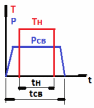 Рис. 83С. Циклограмма диффузионной сварки Тн – температура нагрева; Рсв – сварочное усилие (давление); tн – время нагрева свариваемых элементов; tсв – время сварки. |