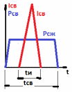 Рис. 81С. Циклограмма конденсаторной сварки Iсв – ток сварки; tсв – время сварки; Рсв – сварочное усилие (давление); Рсж – усилие (давления) сжатия свариваемых элементов; tи – время импульса сварочного тока (время разряда конденсатора). tи = 0,005 – 0,6с для бестрансформаторной сварки; tи = 0,001 – 0,01с для трансформаторной сварки | |