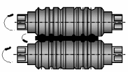 | Рис. 18Д Поперечная прокатка зубчатых колёс | Исходная заготовка помещается между профилирующими зубчатыми валками, которые в процессе работы постепенно сближаются друг с другом, производя накатку зубьев на исходной заготовке. Выполняется в горячем состоянии. | ||