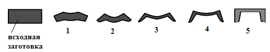 Рис. 13Д. Последовательность получения швеллера 1, 2, 3, 4, 5 – переходы |