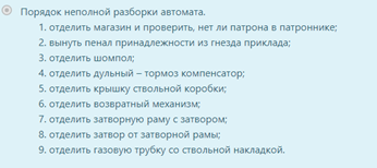- полная разборка применяется для чистки при сильном загрязнении автомата, после нахождения автомата, после нахождения его под дождем или в снегу, при переходе на новую смазку и при ремонте. )