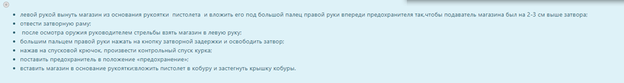 Раскрыть положение пистолета и магазина по команде "Оружие к осмотру".