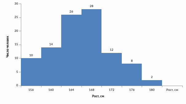 Пример 1. На гистограмме приведены результаты измерений роста 100 студентов. Вид гистограммы позволяет предположить нормальное распределение случайной величины Х – роста студентов с неизвестными параметрами: X