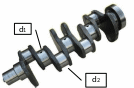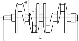 а – общий вид коленчатого вала; б – эскиз коленчатого вала (d1 – диаметр коренной шейки, d2 – диаметр шатунной шейки)