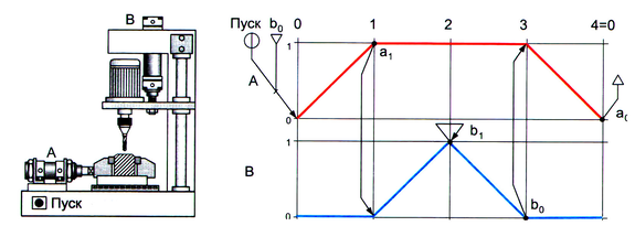 Рис. 1.14. Сверлильный полуавтомат и его диаграмма