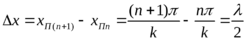 Легко показать, что, как и в случае пучностей, расстояние между соседними узлами равно