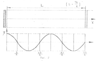 в уравнении (12) равно нулю, называется основным тоном. Для этой частоты на длине трубы укладывается 1/4 длины волны, соответствующая этой частоте. Остальные частоты, на которых возникает стоячая волна в трубе, называются обертонами. Частоты и длины волн основного тона и обертонов, для рассмотренного случая, определяются выражениями (11) и (12).