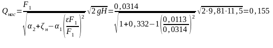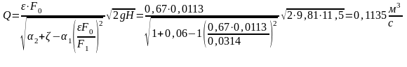 Расход через насадок найдем аналогично поиску расхода через отверстие: