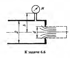 Определить расход воды Q через отверстие с острой кромкой диаметром d=120 мм, выполненное в торце трубы диаметром D=200 мм, если показание манометра перед отверстием М=0,1 МПа и высота расположения манометра над осью трубы h=1,3 м.