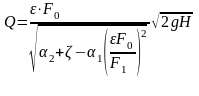 ε=0,62+0,38(F0/F1)2 , где F1 - площадь цилиндрического резервуара, F0 – площадь круглого отверстия.