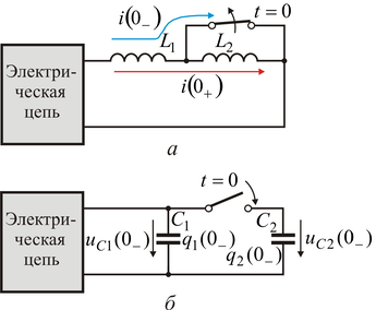 Высказанные выше положения о том, что запас энергии магнитного или электрического поля может изменяться только плавно, без скачков, выражают принцип непрерывности во времени потокосцепления индуктивности и электрического заряда емкости и называются законами коммутации.