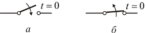 В дальнейшем примем, что коммутация производится в момент времени t = 0. При этом будем оценивать состояние схемы (напряжения и токи) в момент времени, непосредственно предшествующий коммутации,