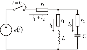 Составляется система дифференциальных уравнений Кирхгофа, описывающая процесс в цепи после коммутации.