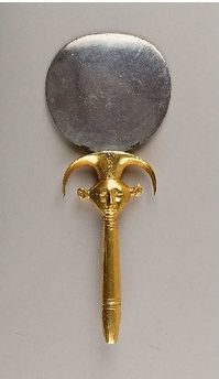 Было изготовлено в турции 5.5 тысяч лет до н.э. Сделано из обсидиана (а также из золота, бронзы и серебра). Металл заливали в специальные формы, а затем тщательно полировали, чтобы он отражал солнечные лучи. http://kakizobreli.ru/kak-izobreli-zerkalo/ | Требовали тщательного ухода. Очень высокая цена, могли позволить только богатые люди. Тяжёлые. | Сделать так, чтобы поверхность не царапалась. | |
