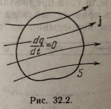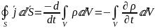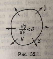 даёт заряд, выходящий в единицу времени из объёма V, ограниченного поверхностью S. В силу сохранения заряда эта величина должна быть равна скорости убывания заряда q, содержащегося в данном объёме: