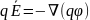 Вынеся константу q за знак градиента и сократив на нее: