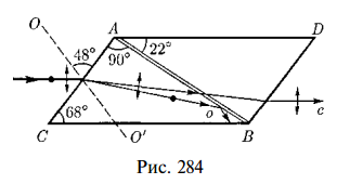 . На передней грани призмы естественный луч, параллельный ребру CB, раздваивается на два луча: обыкновенный (
