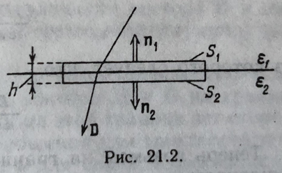 Теперь возьмём на границе диэлектриков воображаемую цилиндрическую поверхность высоты h: