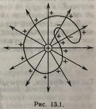 через любую замкнутую поверхность равен числу линий, выходящих наружу, то есть начинающихся на заряде, если он положительный, и числу линий, входящих внутрь, то есть оканчивающихся на заряде, если он отрицательный. Учтя, что количество начинающихся или оканчивающихся на точечном заряде линий численно равно