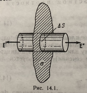 – заряд, заключённый в слое площадки dS. Под dS подразумевается бесконечно малый участок поверхности. Если заряд распределён по объему или поверхности цилиндрического тела (равномерно в каждом сечении), используется линейная плотность заряда: